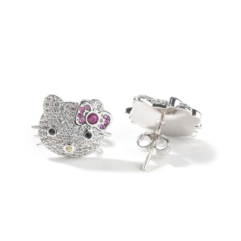 Sparkle with Every Movement. Add a whimsical yet luxurious touch to your jewelry collection with our Iced Out Kitty Stud Earrings. These stunning studs feature a high-impact "iced out" design that captures and reflects light brilliantly, making them the perfect accessory for both daily glam and special occasions.